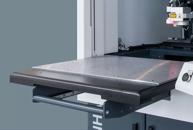 Özellikle ağır bileşenler, ağır hizmet tipi bir çekmece veya ağır hizmet tipi bir çekmece çekmecesi yardımıyla lazer sistemine yerleştirilebilir. Şirket içi geliştirmenin avantajları, özellikle kolay erişilebilirlik ile birlikte yüksek taşıma yükünde yatmaktadır. Çekmecenin yük kapasitesi makine tipine ve ekipmana bağlı olarak değişir.